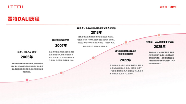 第六屆 DALI 聯盟中國區生態伙伴大會暨DALI中國獎頒獎典禮已圓滿落幕。雷特很榮幸能夠與照明行業翹楚共聚一堂,亦將繼續履行好DALI聯盟董事會成員的職責,以技術創新為核心,以開放生態為導向,不斷探索 DALI 技術在更多場景的應用可能性,為智能照明行業的發展貢獻更多力量,與行業伙伴攜手共繪智能照明新藍圖。